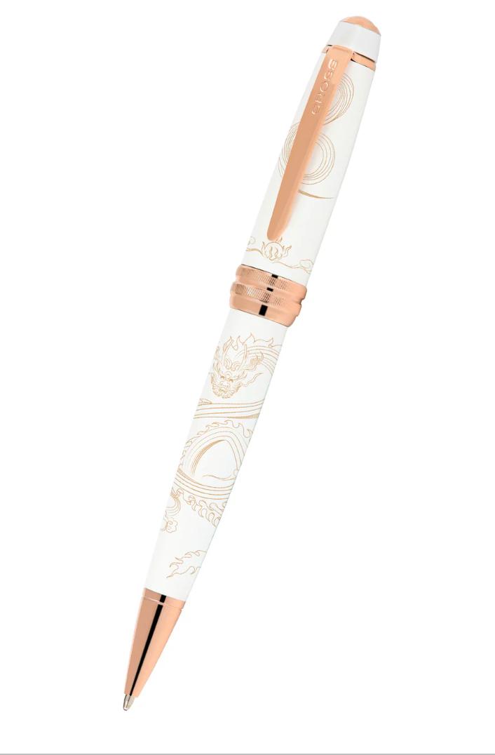 Bolígrafo Cross color blanco con estampado de dragon.
