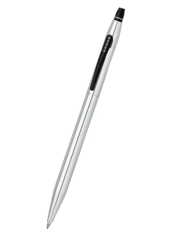 Descripción: Bolígrafo Cross color plateado con detalles en negro.