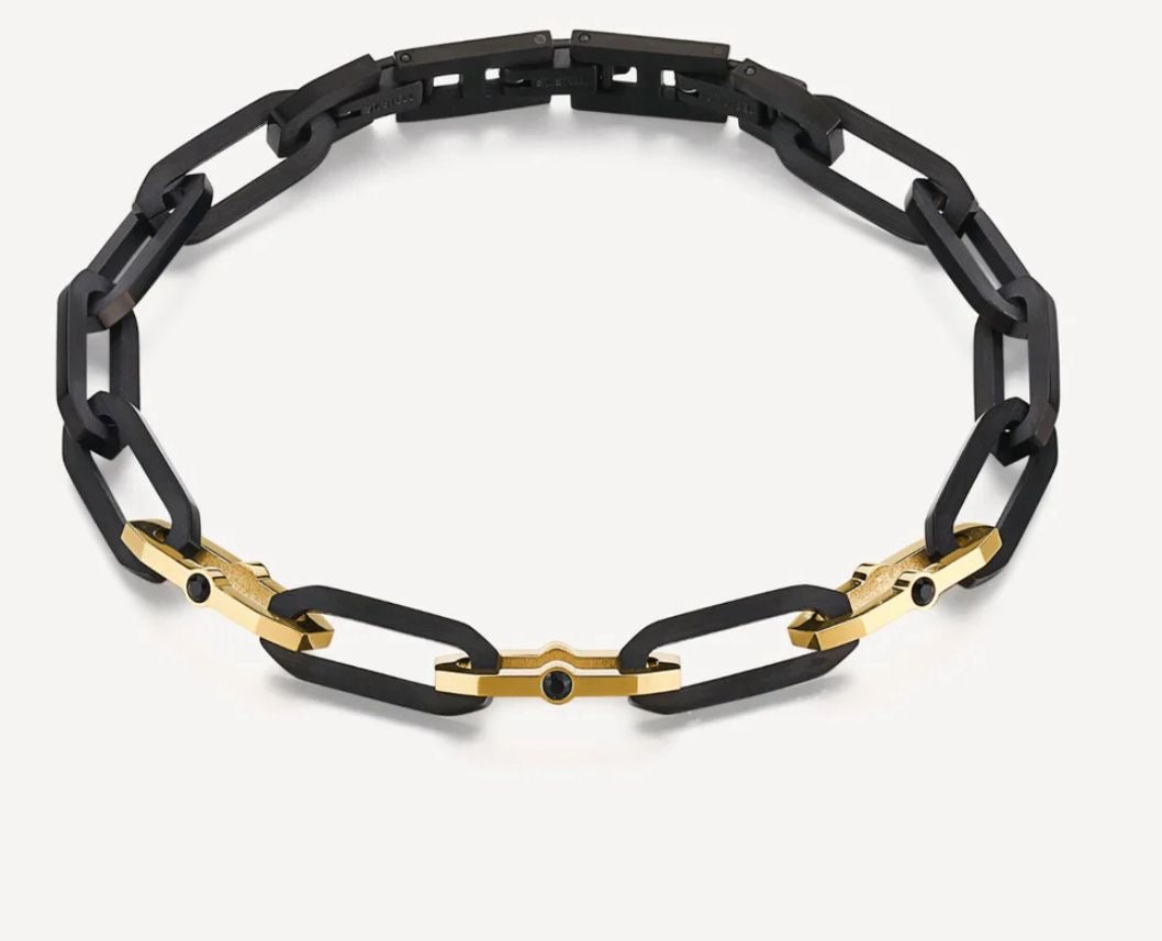Descripción: pulsera Caliburn negra y dorada piedra negra stainless steel 8”+1”
