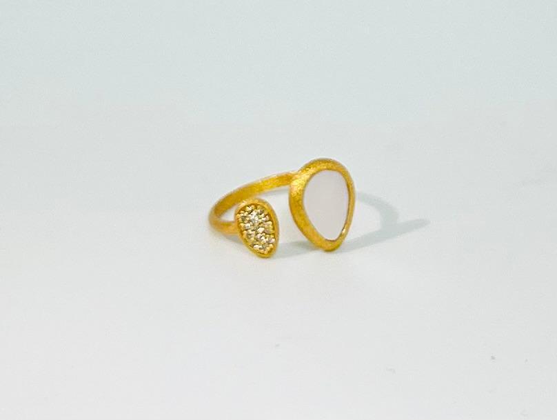 Descripción: Anillo plata 925 dorada con pieras cz y una madre perla en forma de gota.